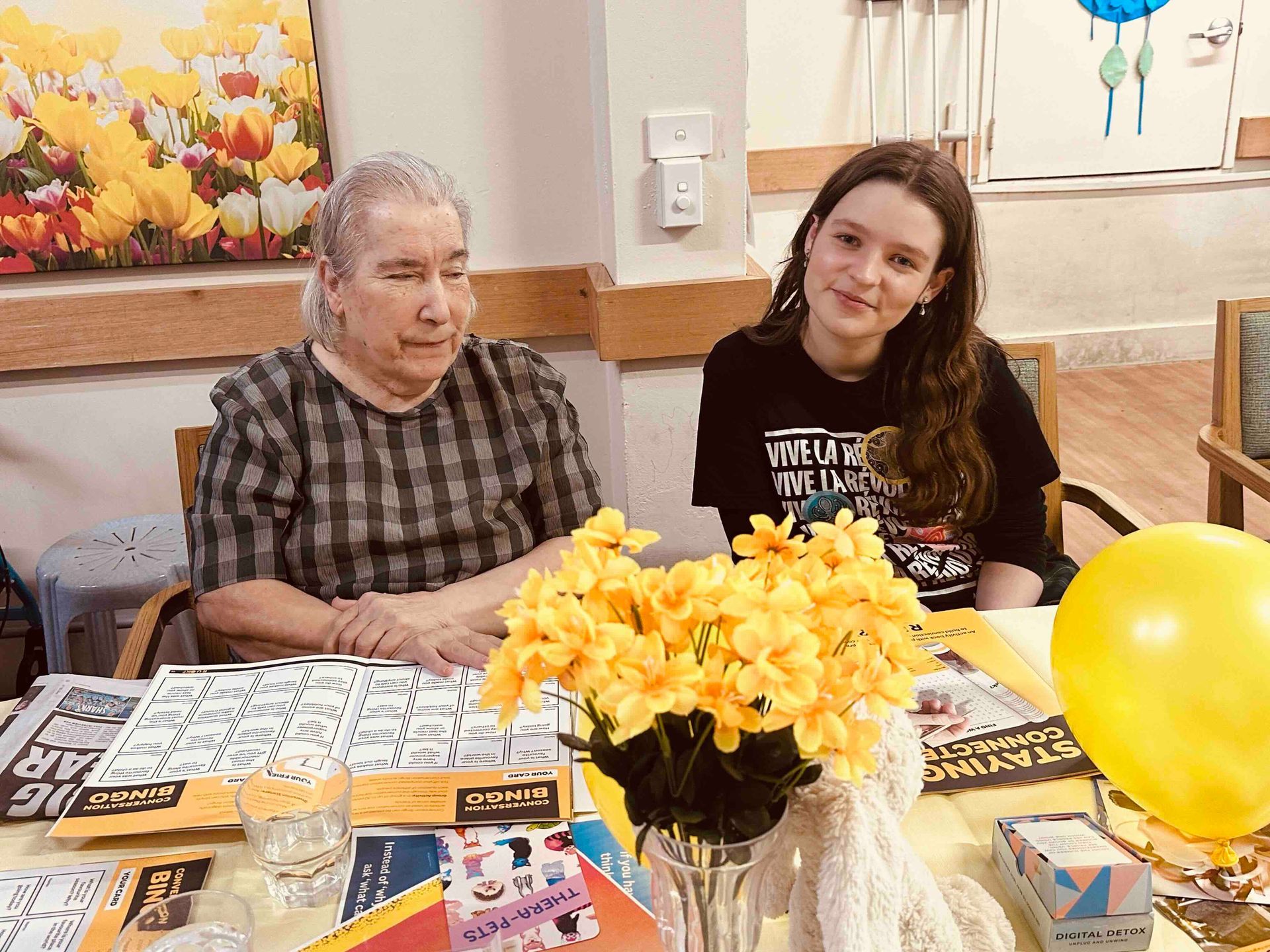 A recent session, which encouraged asking ‘are you OK?’ any day, saw students gather in an aged-care community with R U OK? Conversation Bingo cards, which feature prompts to spark humour, curiosity, and connection.