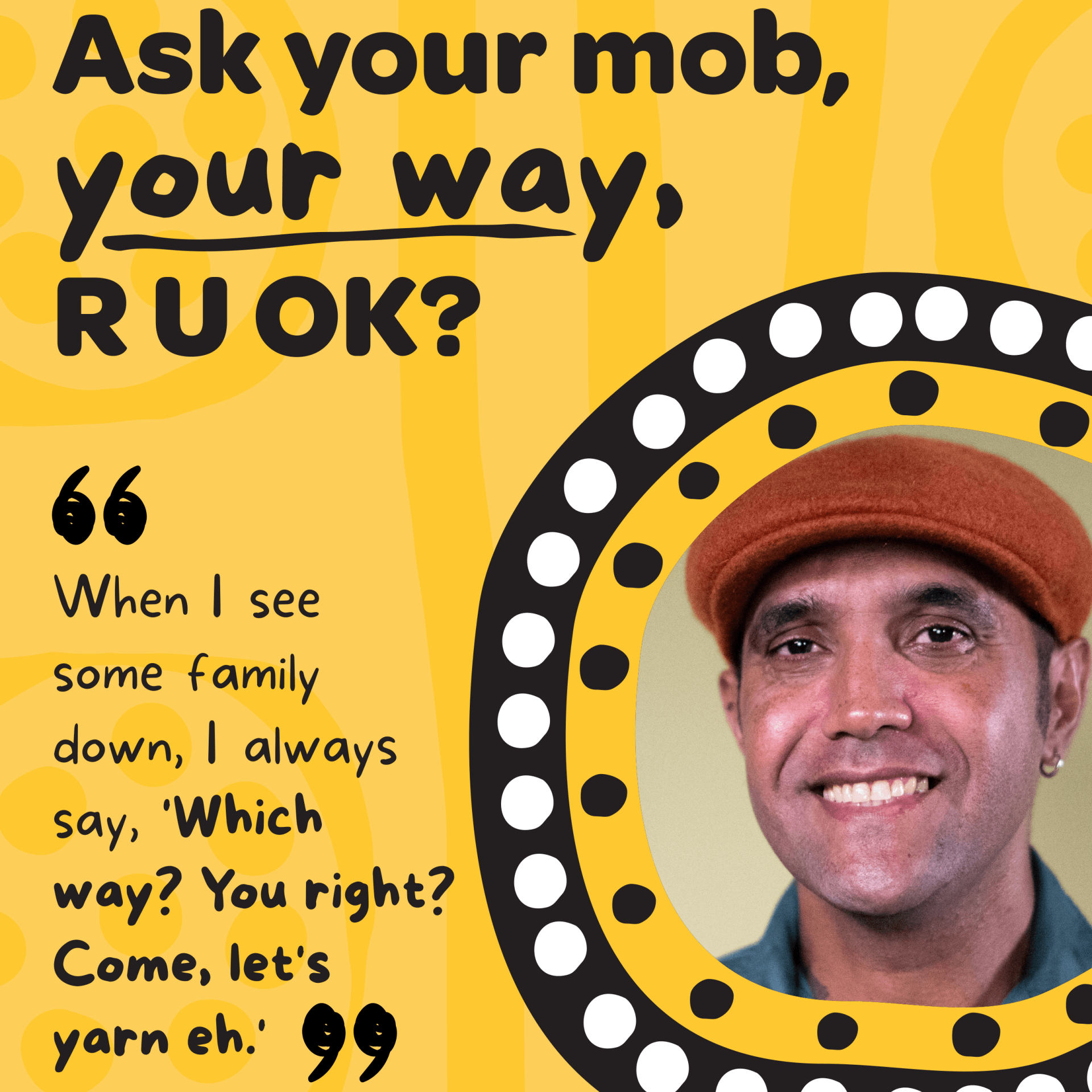 By asking and listening, we can help those we care about feel more supported and connected, which can help stop them from feeling worse over time. That's why this campaign has a simple message: Ask your mob, in your way, R U OK?
